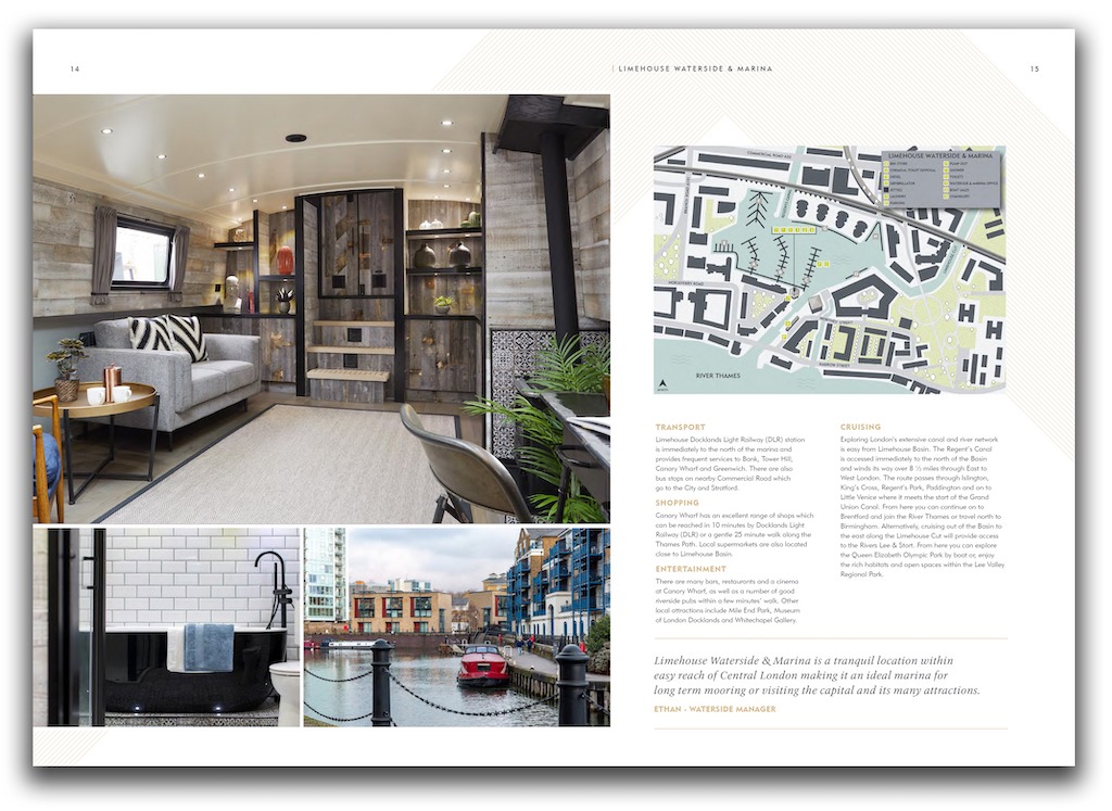 Our partnership with the UK’s leading marina operator, Aquavista Watersides Limited, allows you to select your preferred choice of Waterspace Living houseboat with a prime London location. Three of the locations are featured in the new brochure which we’ve recently launched.